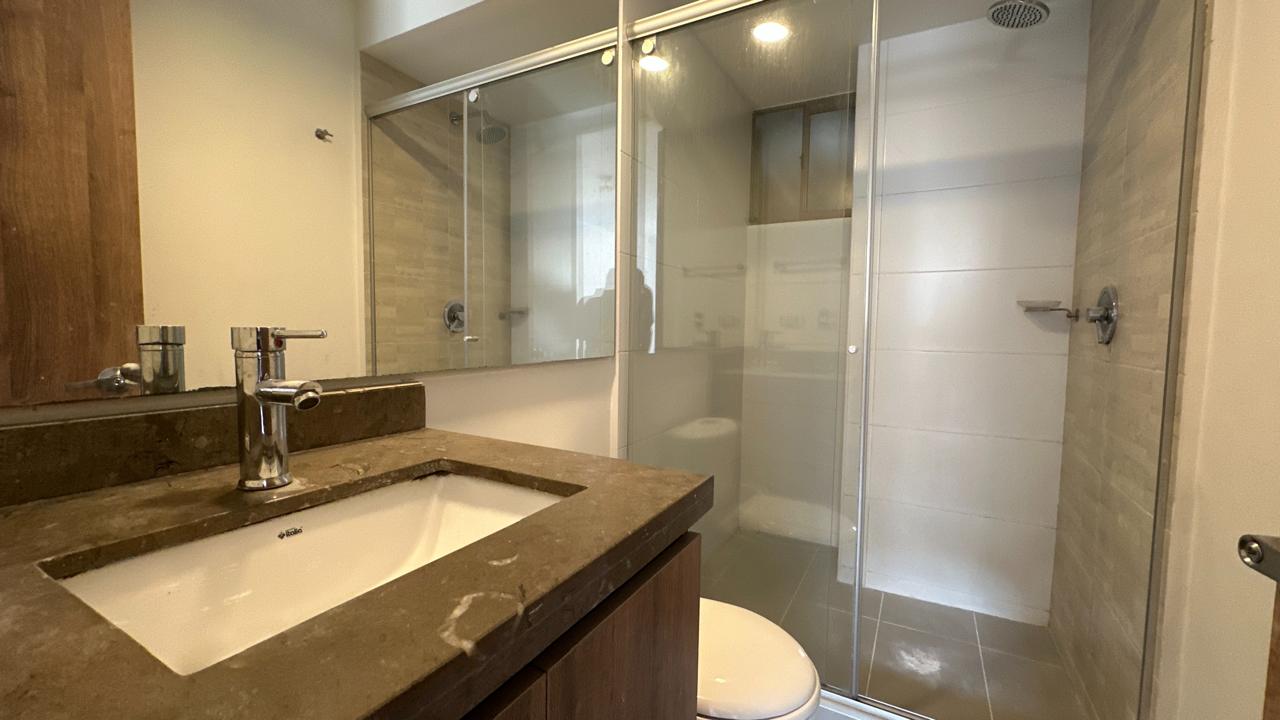 El inmueble se encuentra en un primer piso con vista interior, muy buena entrada de luz natural, hall de acceso, zona de lavandería independiente, patio interno, cocina abierta con mesón en granito ideal para utilizar como comedor. Sala con chimenea y centro de entretenimiento. Finalmente la habitación cuenta con vista interior, black out, persiana, closet y baño privado.