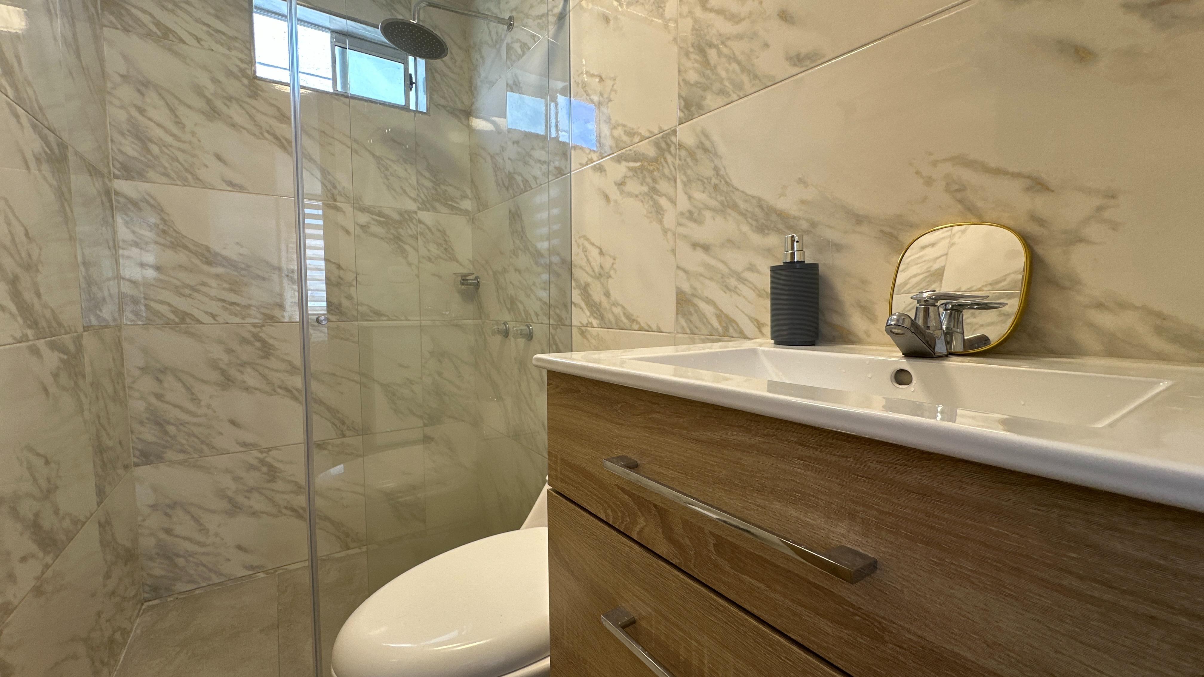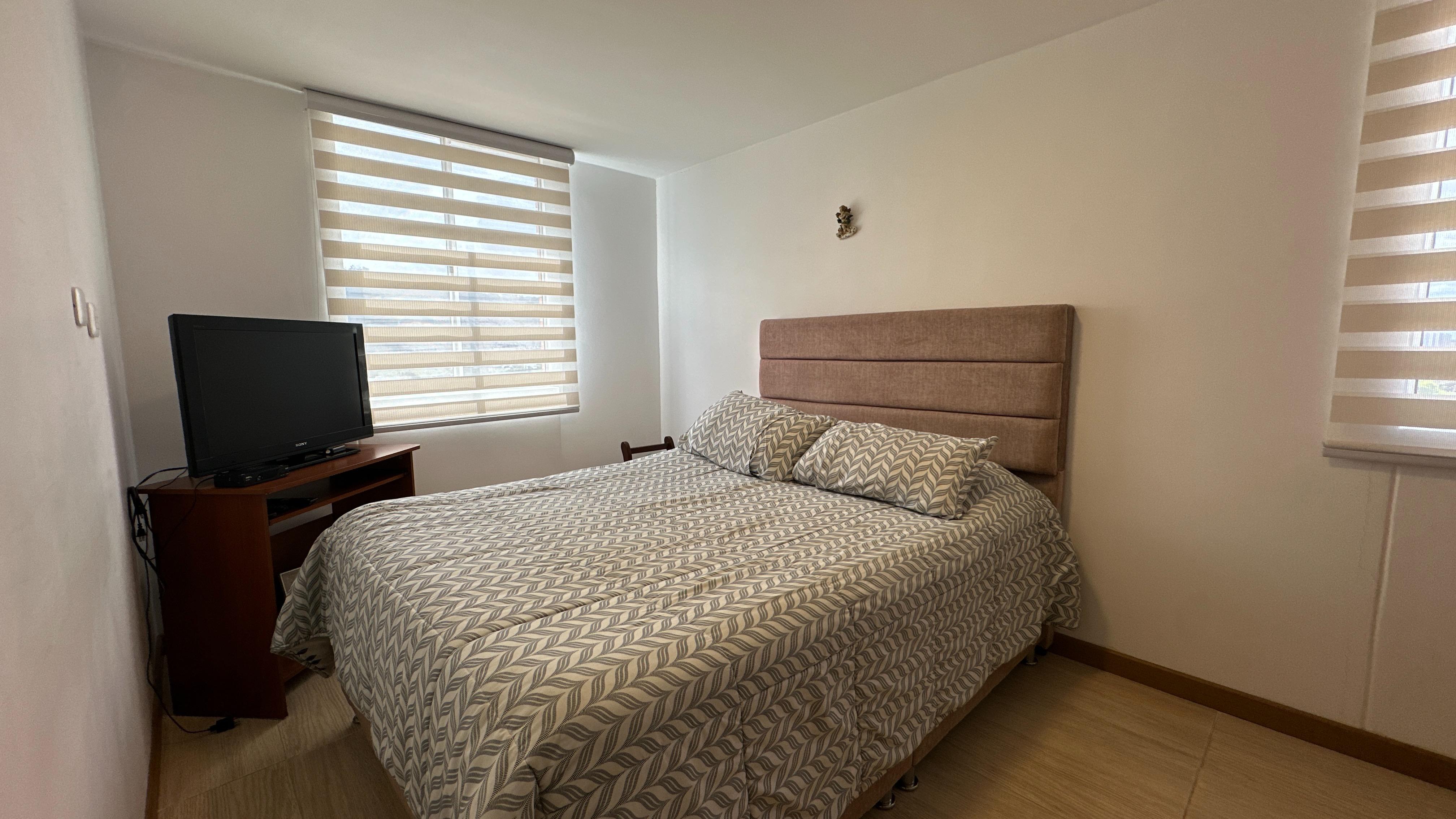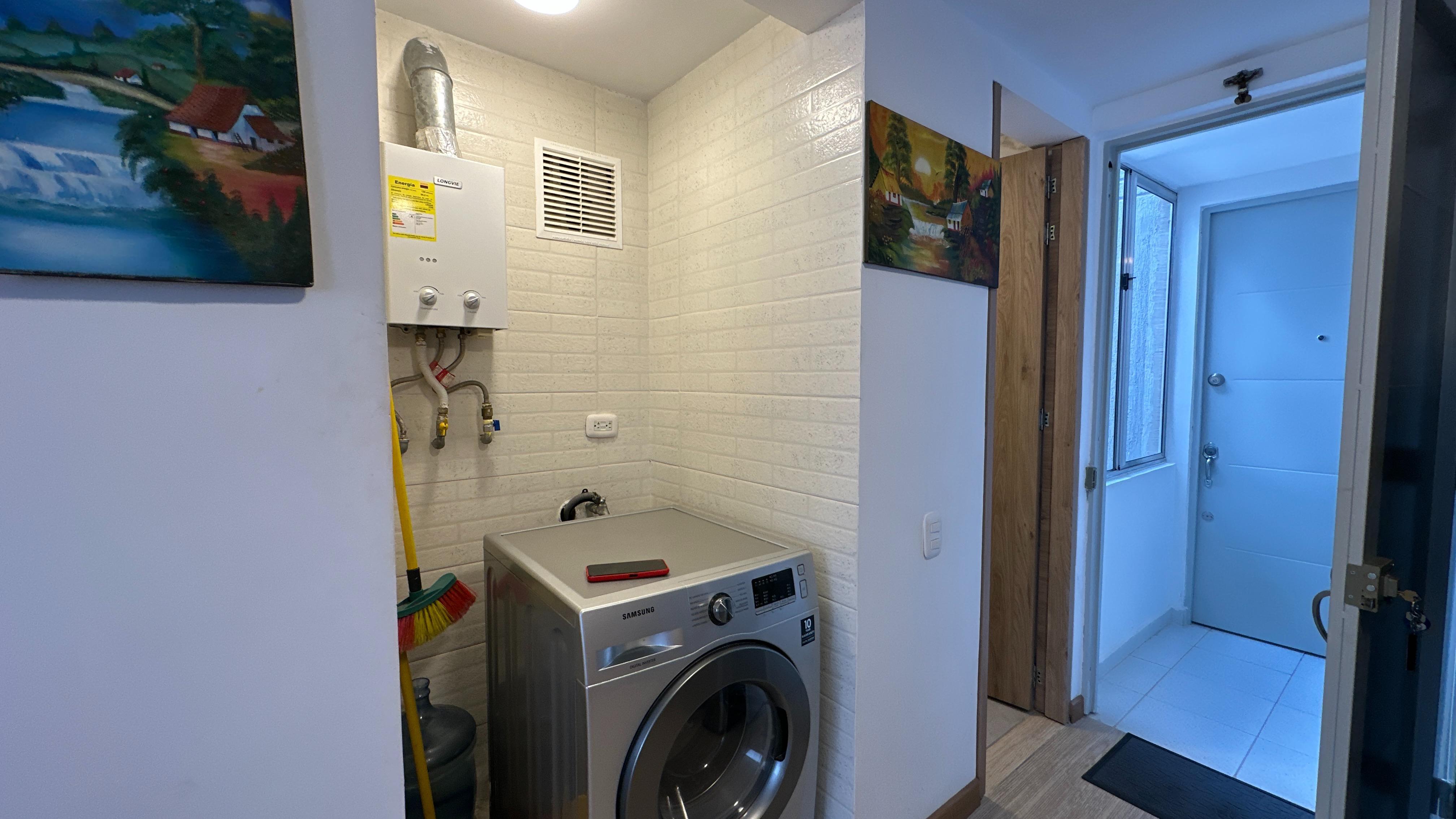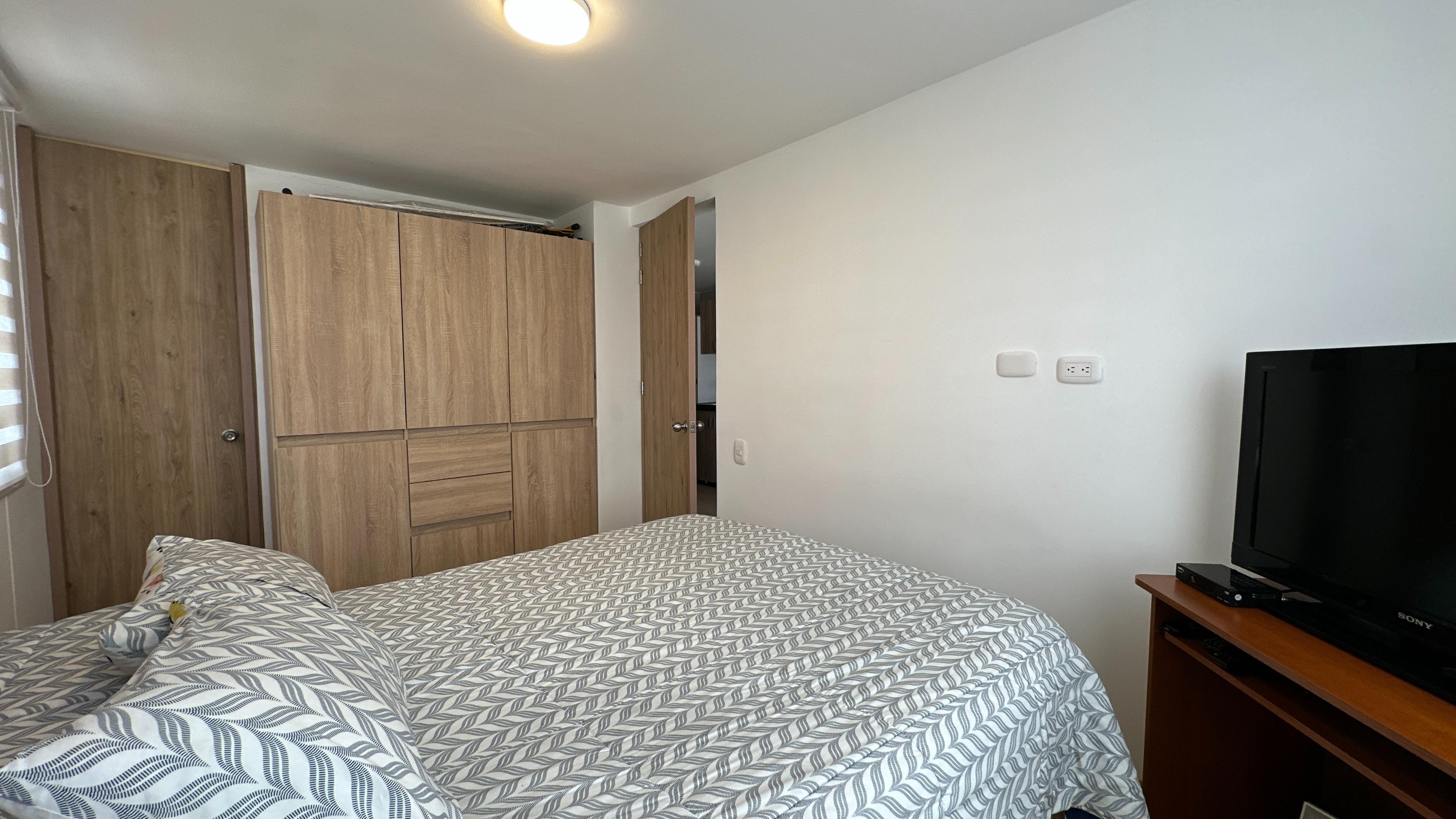 El apartamento se encuentra ubicado en un piso 15, la cual permite muy buena iluminación natural, ventilación y vista agradable. Cuenta con cocina abierta con mesón en acero inoxidable, zona de lavandería, baño social, sala y comedor, una habitación con amplio closet y baño privado con acabados modernos.