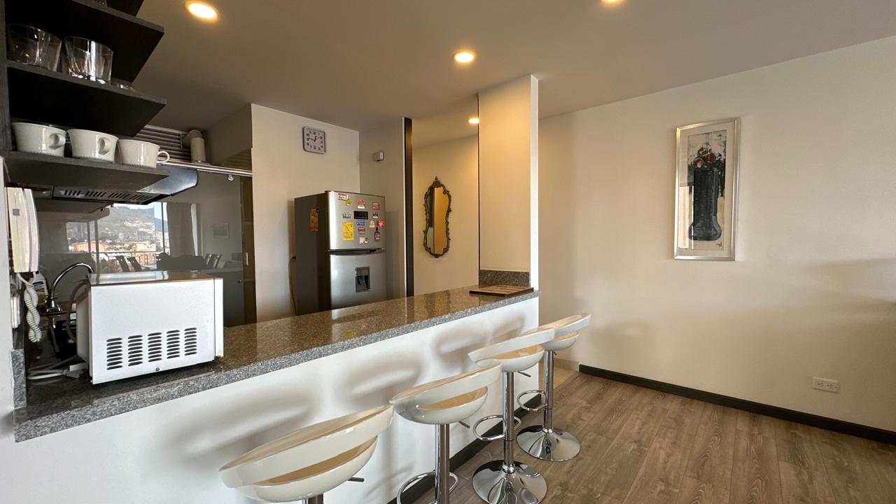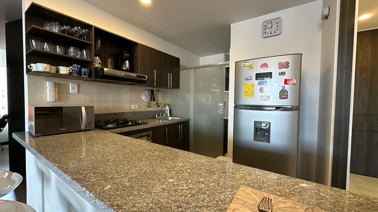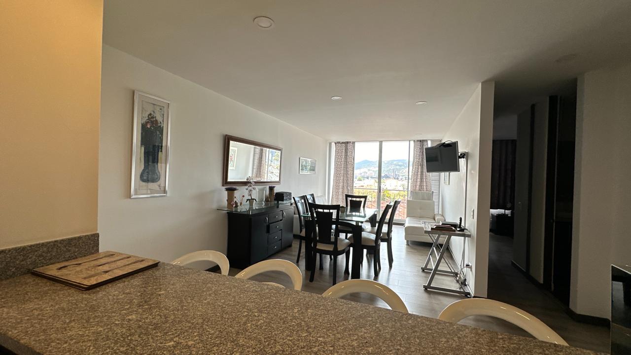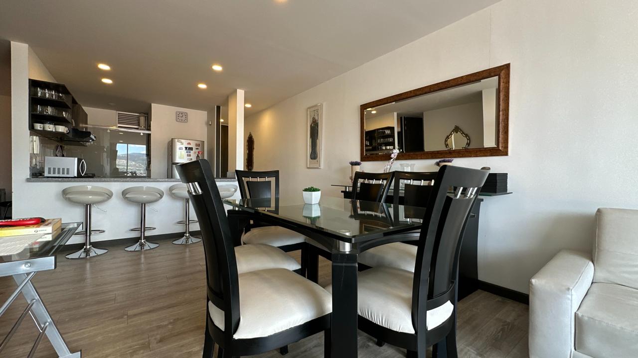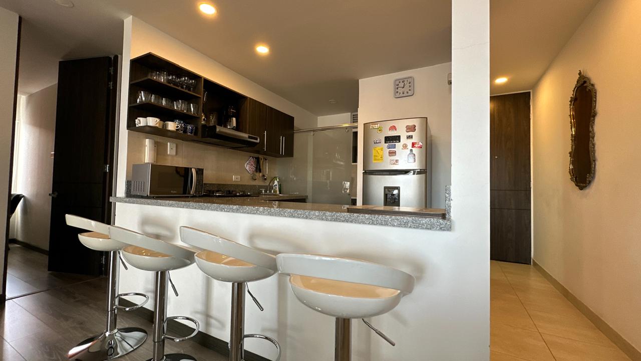 Se encuentra ubicado en septimo piso con vista exterior al norte de la ciudad. 87.54m2 distribuidos en hall de acceso, donde encontrarás el baño social y unos pasos después la cocina abierta con mesón en granito, muebles en madera y zona de lavandería con división en vidrio templado. Espacio de sala - comedor con muy buena iluminación natural gracias al balcón con el que cuenta la propiedad y a su altura. En la zona privada dispone de dos habitaciones auxiliares con su respectivo closet, un baño auxiliar que comparten estas dos habitaciones y finalmente encontrarás la habitación principal, esquinera, con amplio closet y baño privado.