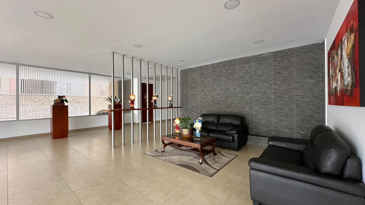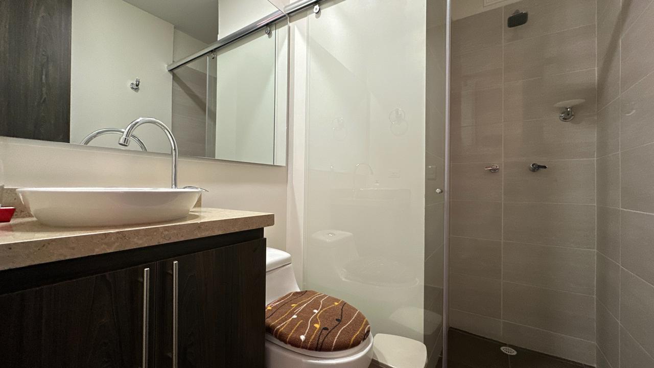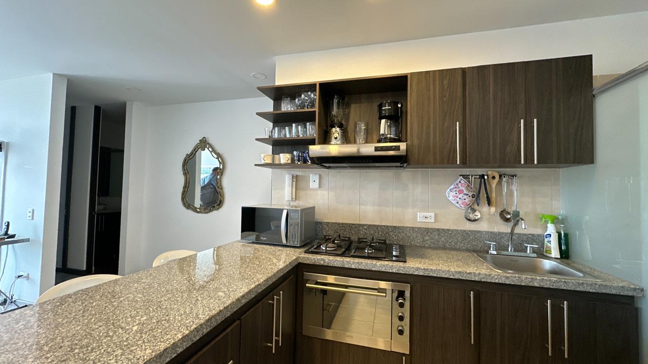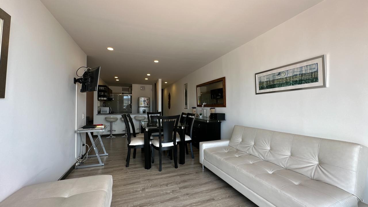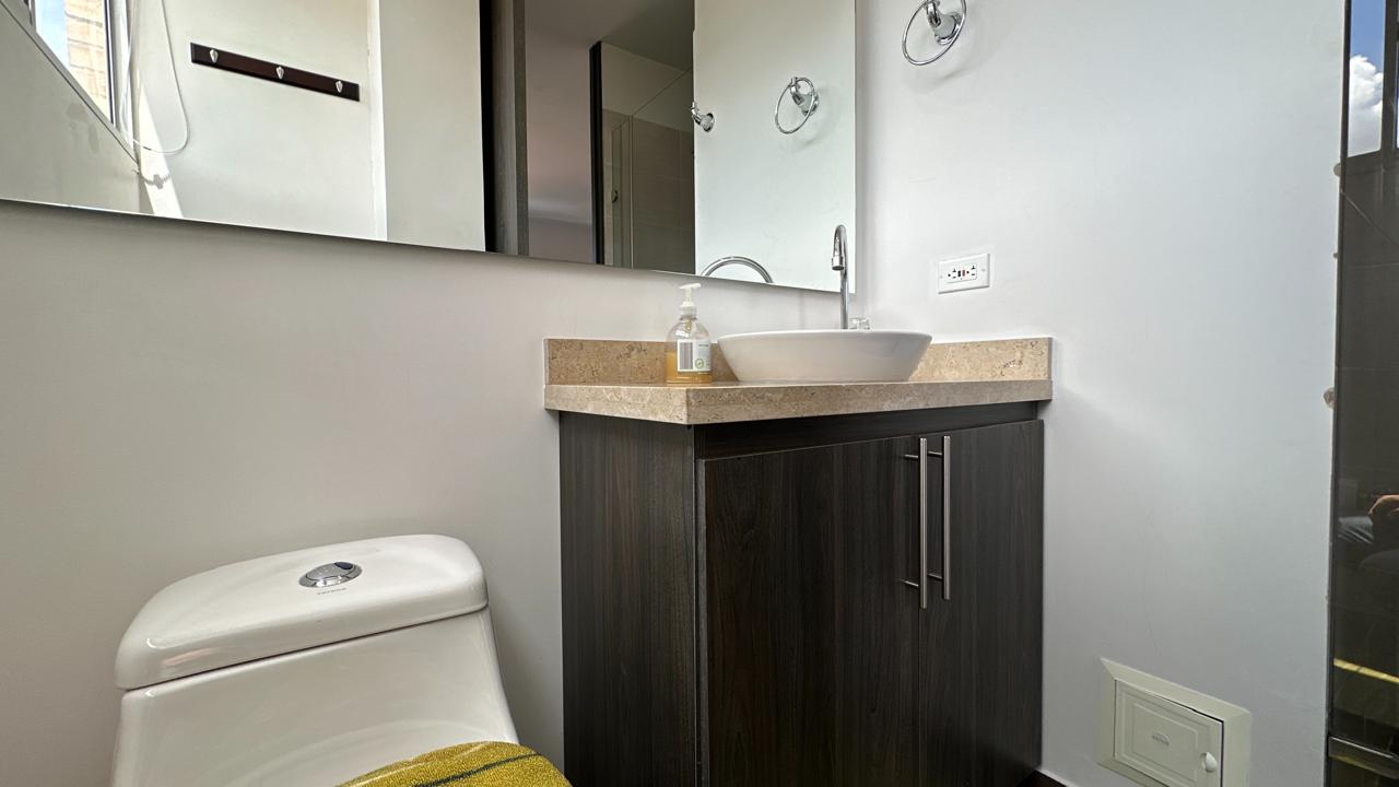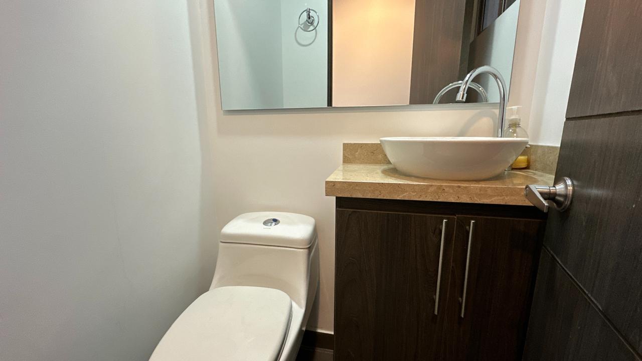 Se encuentra ubicado en septimo piso con vista exterior al norte de la ciudad. 87.54m2 distribuidos en hall de acceso, donde encontrarás el baño social y unos pasos después la cocina abierta con mesón en granito, muebles en madera y zona de lavandería con división en vidrio templado. Espacio de sala - comedor con muy buena iluminación natural gracias al balcón con el que cuenta la propiedad y a su altura. En la zona privada dispone de dos habitaciones auxiliares con su respectivo closet, un baño auxiliar que comparten estas dos habitaciones y finalmente encontrarás la habitación principal, esquinera, con amplio closet y baño privado.