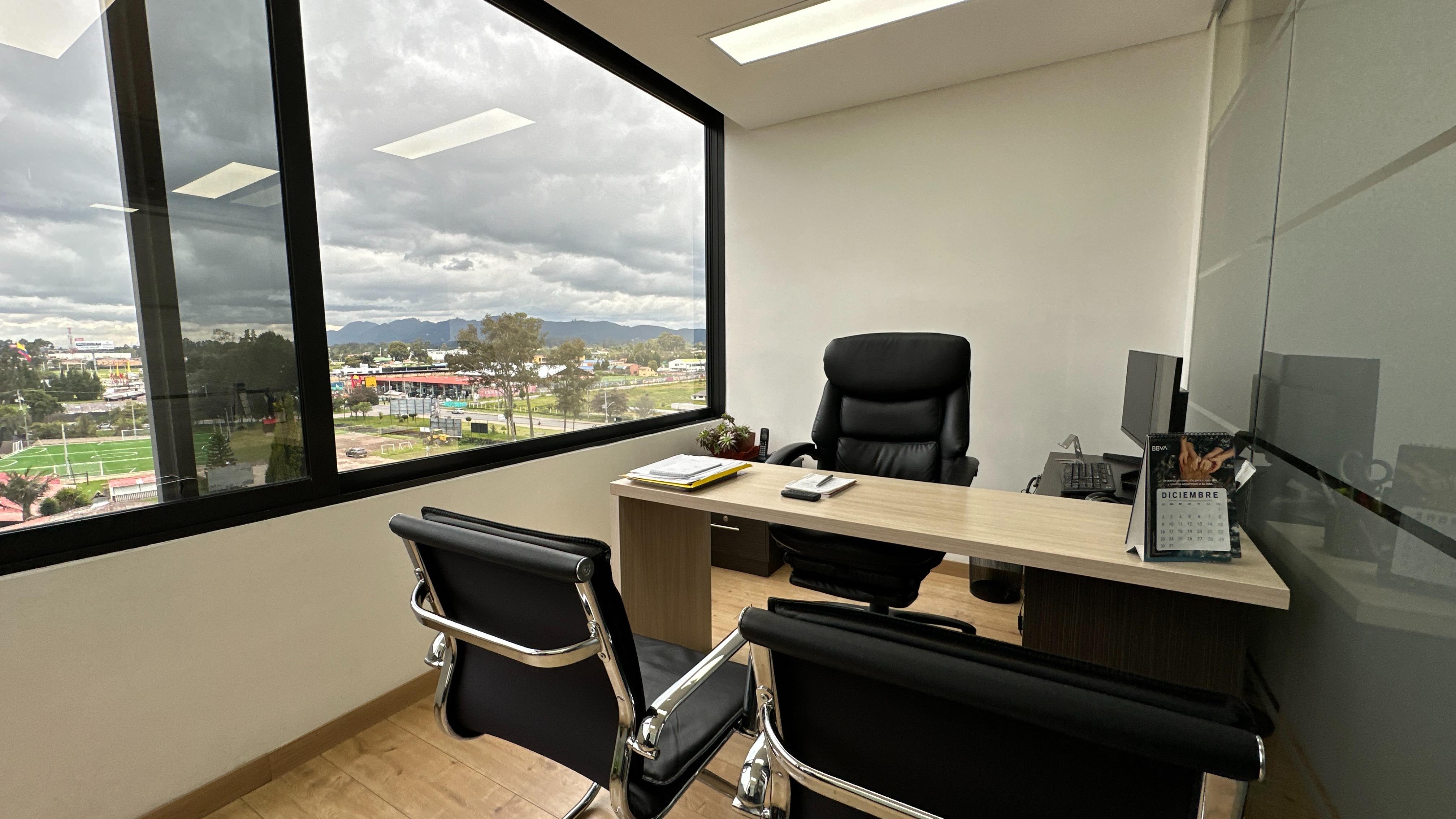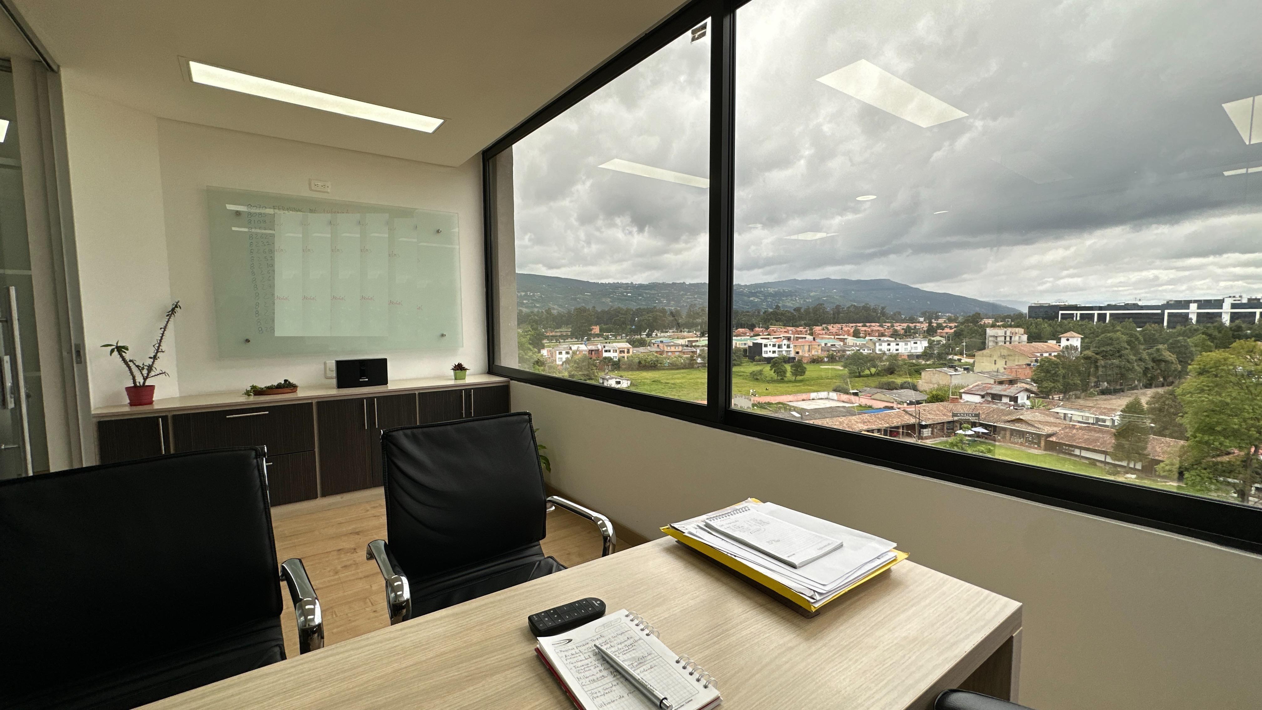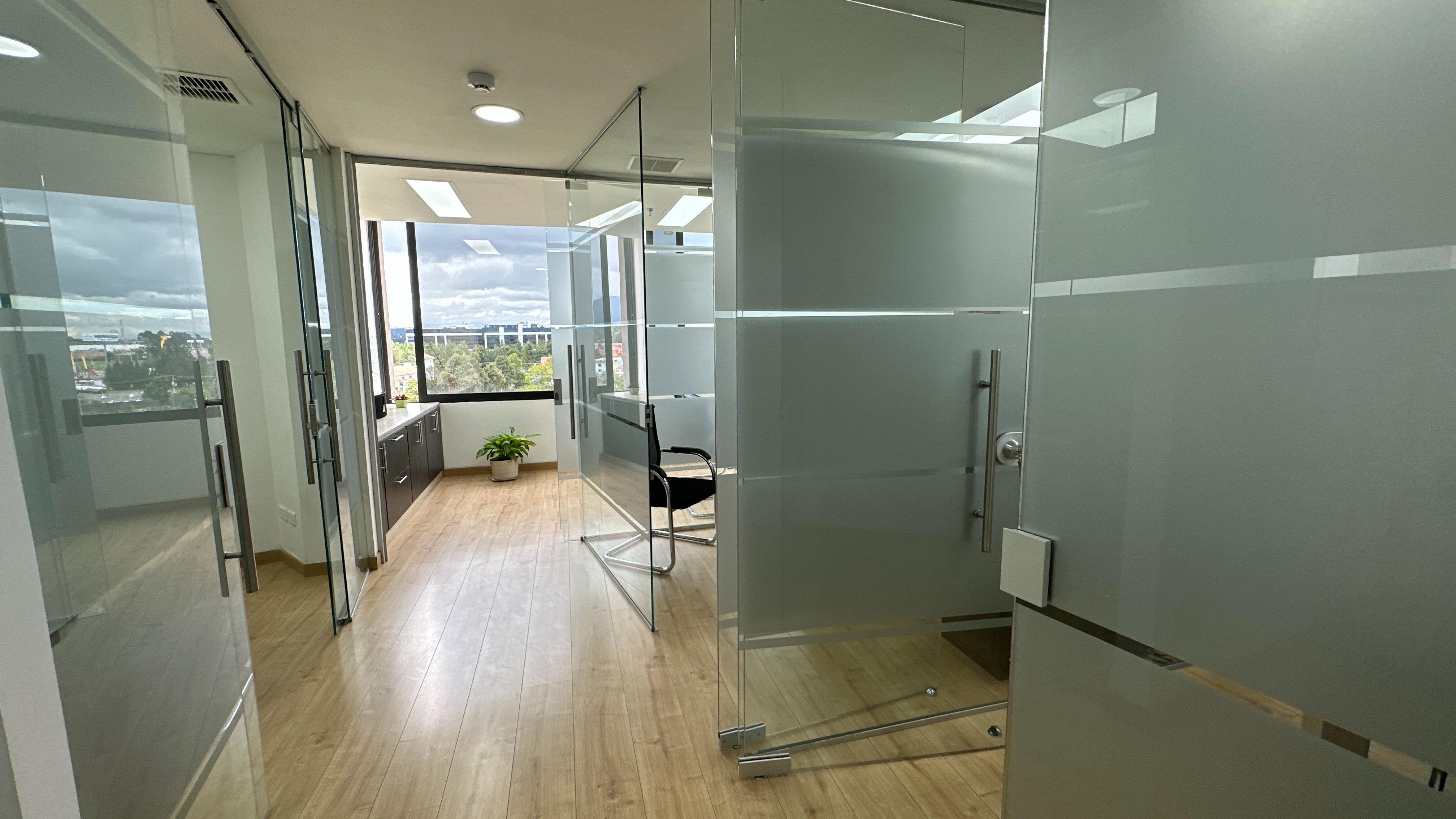 Se encuentra ubicada en piso 6 con una espectacular vista verde, relajante y reconfortante. Son 56m2 distribuidos en zon de recepción, cocineta, dos oficinas auxiliares, una sala de juntas y finalmente la oficina principal de buen tamaño. La oficina se arrenda con todo el mobiliario que se observa.