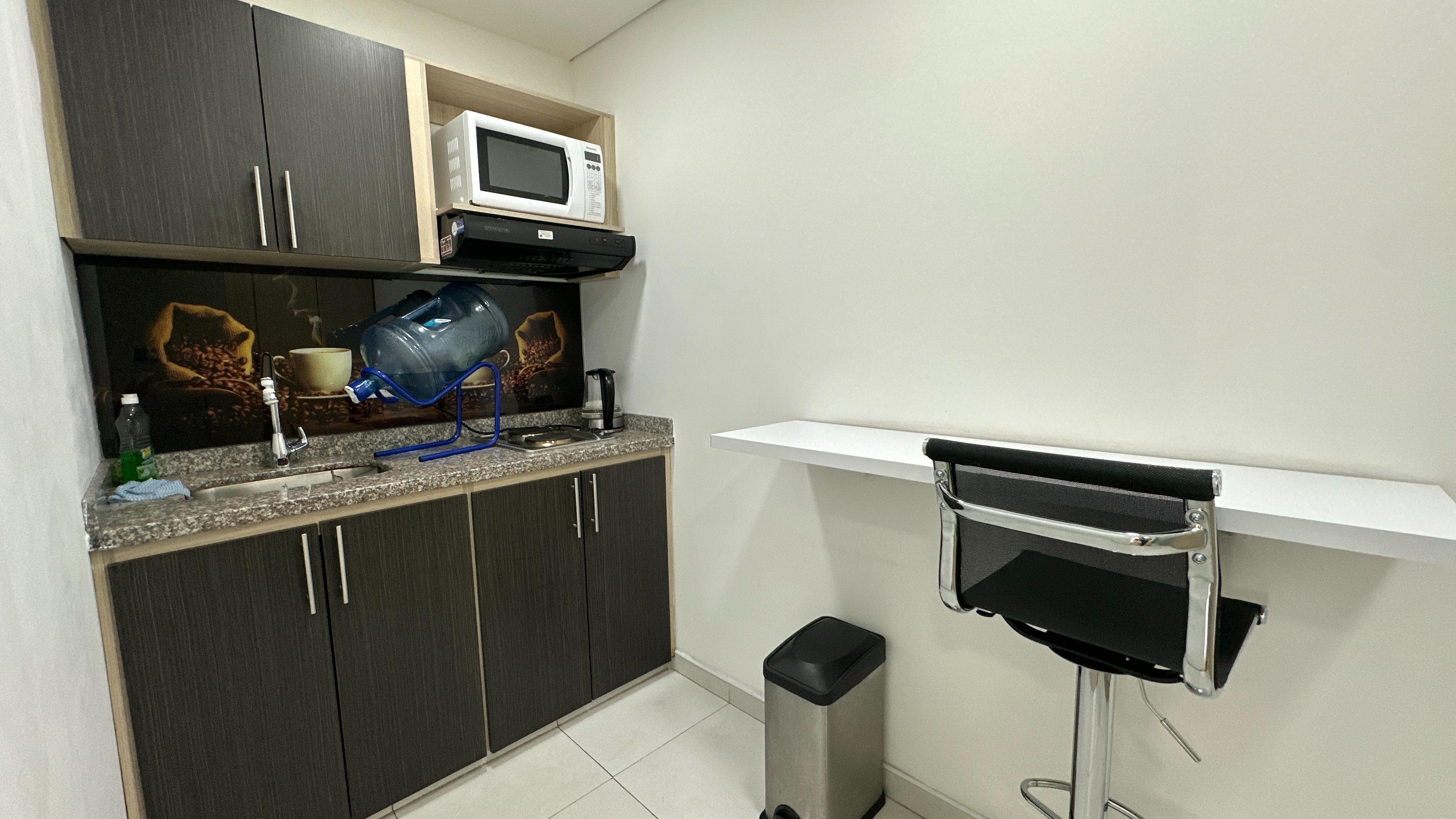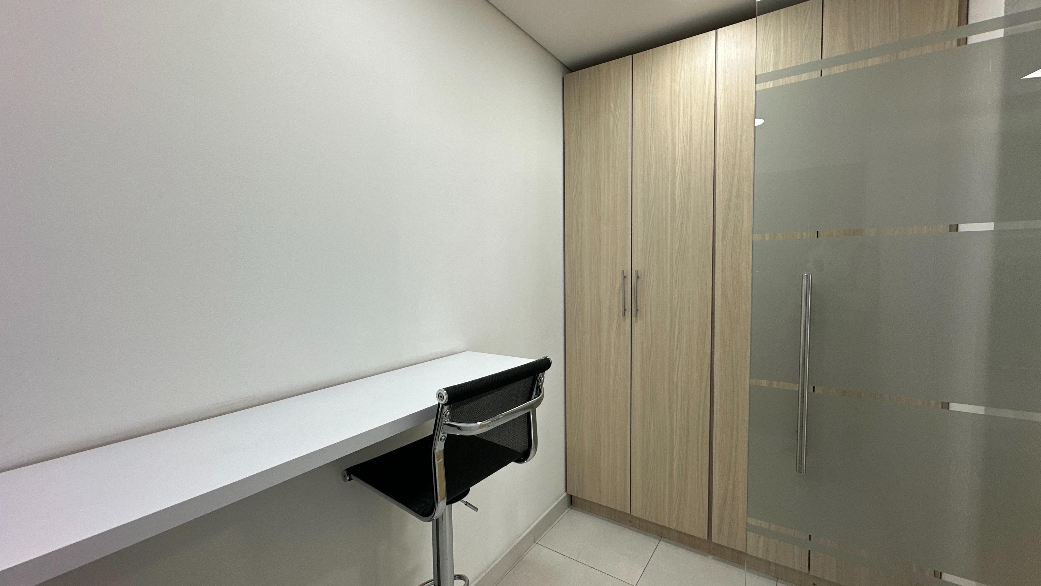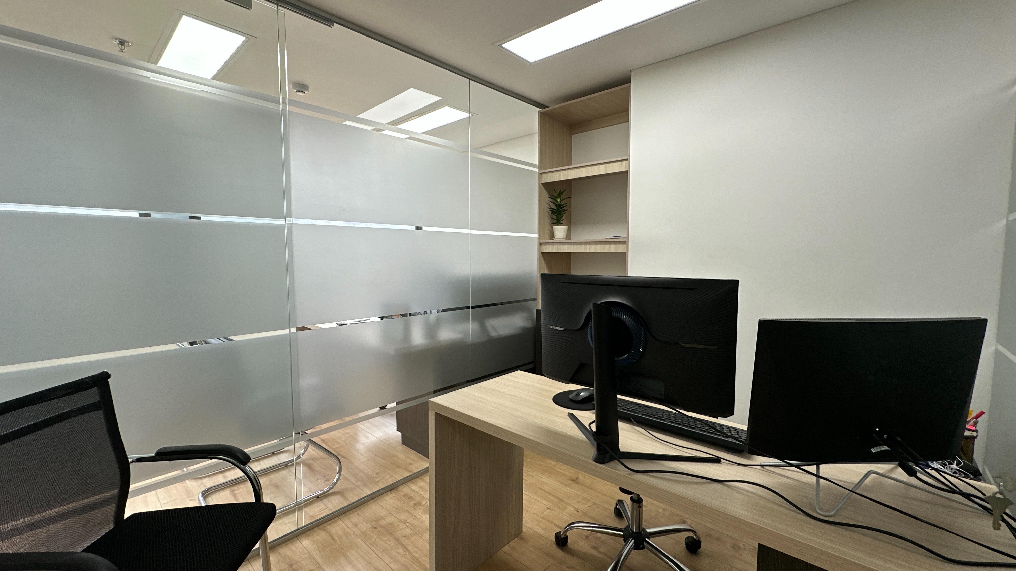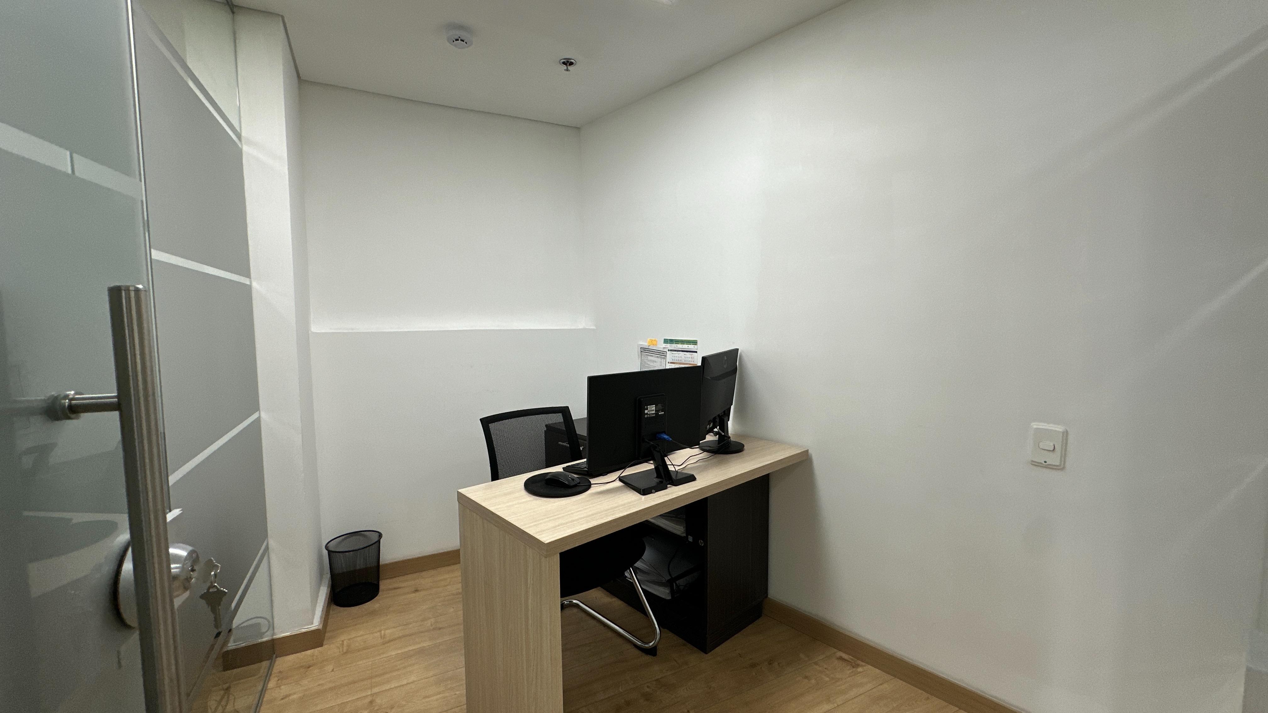 Se encuentra ubicada en piso 6 con una espectacular vista verde, relajante y reconfortante. Son 56m2 distribuidos en zon de recepción, cocineta, dos oficinas auxiliares, una sala de juntas y finalmente la oficina principal de buen tamaño. La oficina se arrenda con todo el mobiliario que se observa.